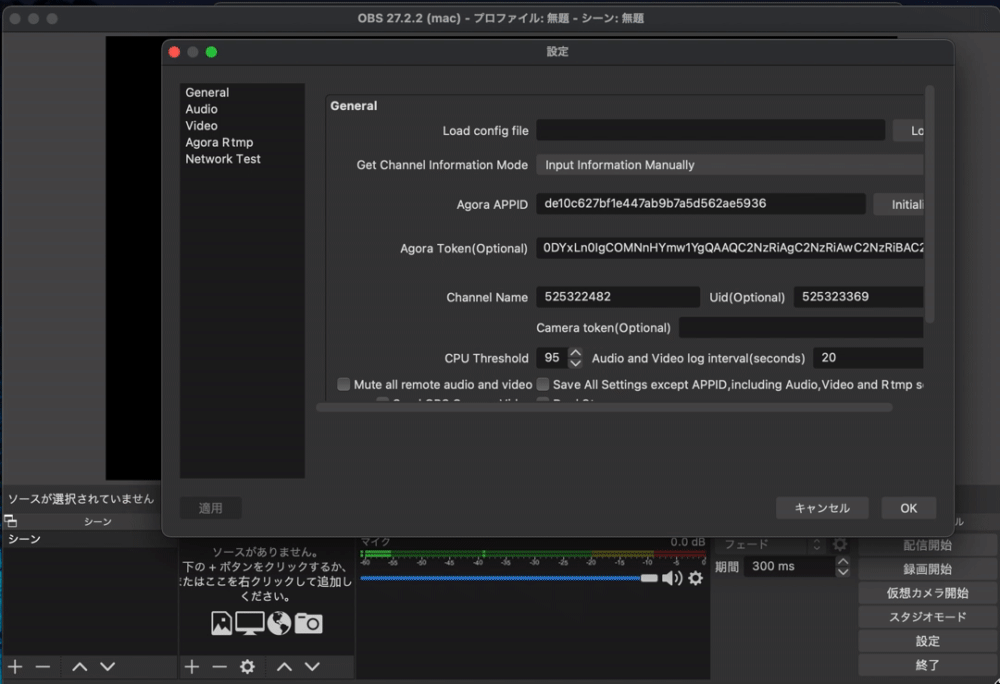 - OBSで「Start Streming to Agora」を選択