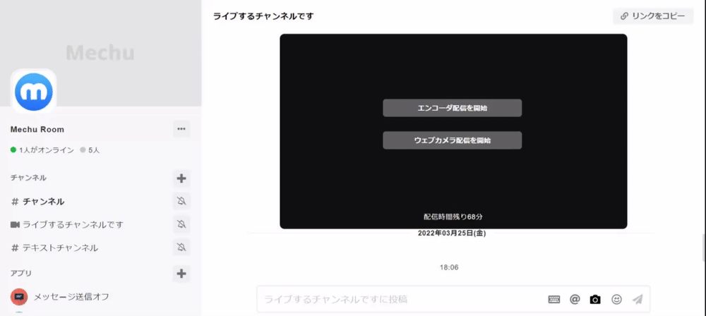 - Mechuで「エンコーダ配信を開始」を選択
